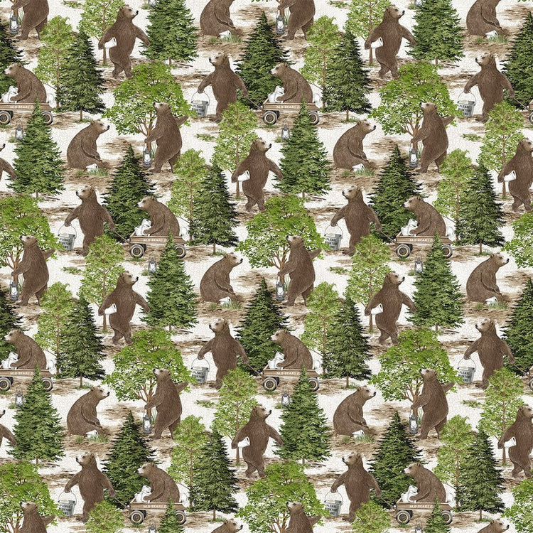 Bear Necessities - Forest Bears in Cream Multi - Deborah Edwards - Northcott