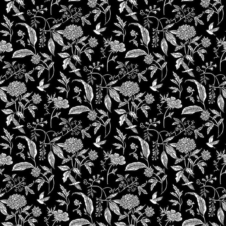 Nature's Sketchbook - Mini Floral Toss in White/Black - Deborah Edwards - Northcott (Pre-order: Feb 2026)