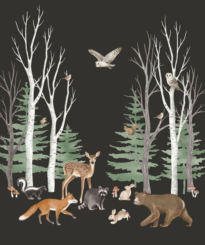 Tanglewood - Tossed Animals in Medium Grey - Deborah Edwards - Northcott (Pre-order: Sept 2026)