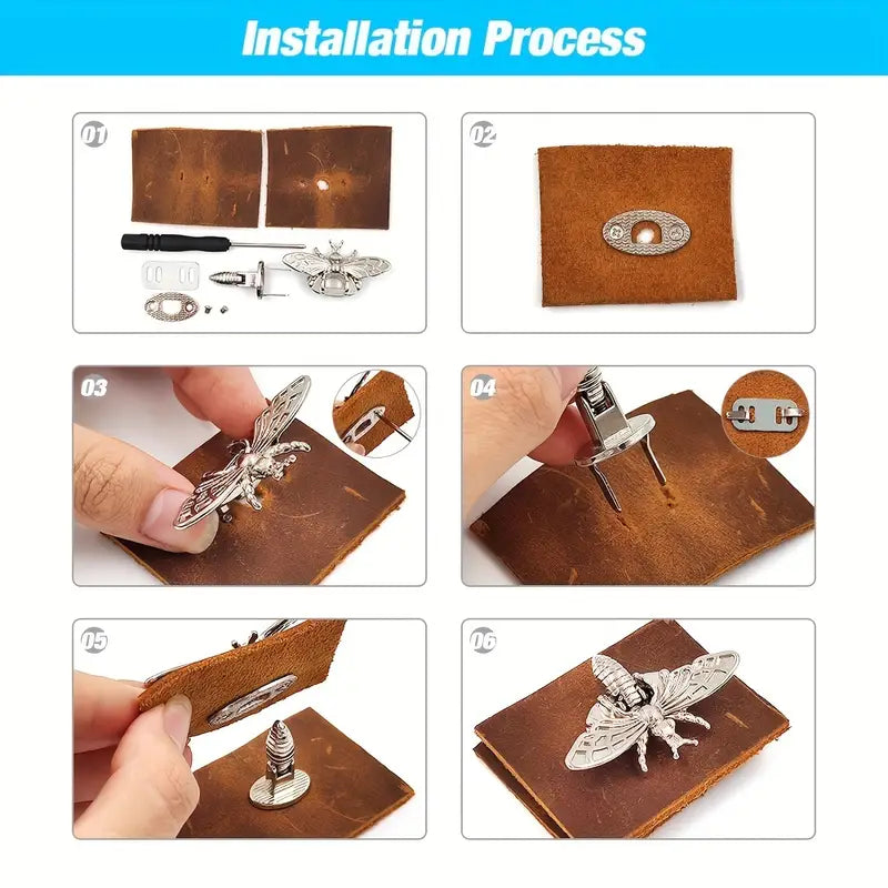 Add this gorgeous bee lock to your next purse or other project! These metal locks are exceptionally detailed, come in a variety of colours, and can be installed easily (Scroll the pictures to see the installation video.)