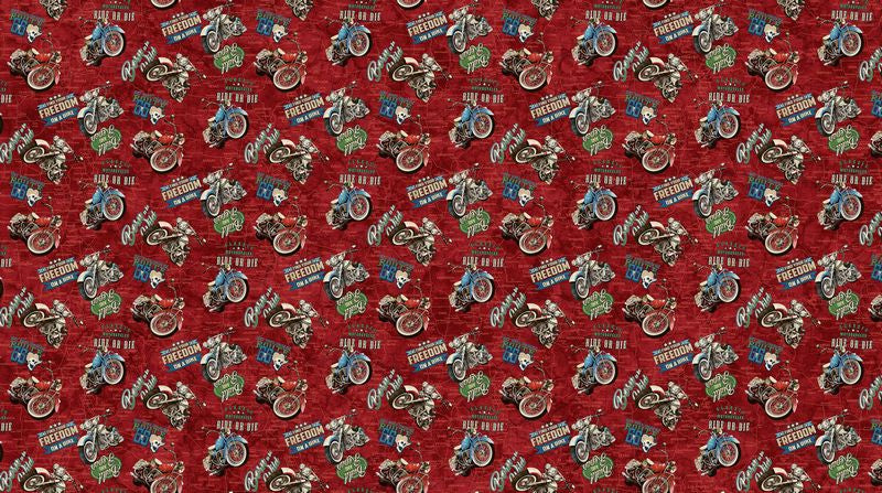 Historic Route 66 - Motorcycle Toss in Red - Deborah Edwards & Melanie Samra - Northcott (Pre-order: Aug 2026)