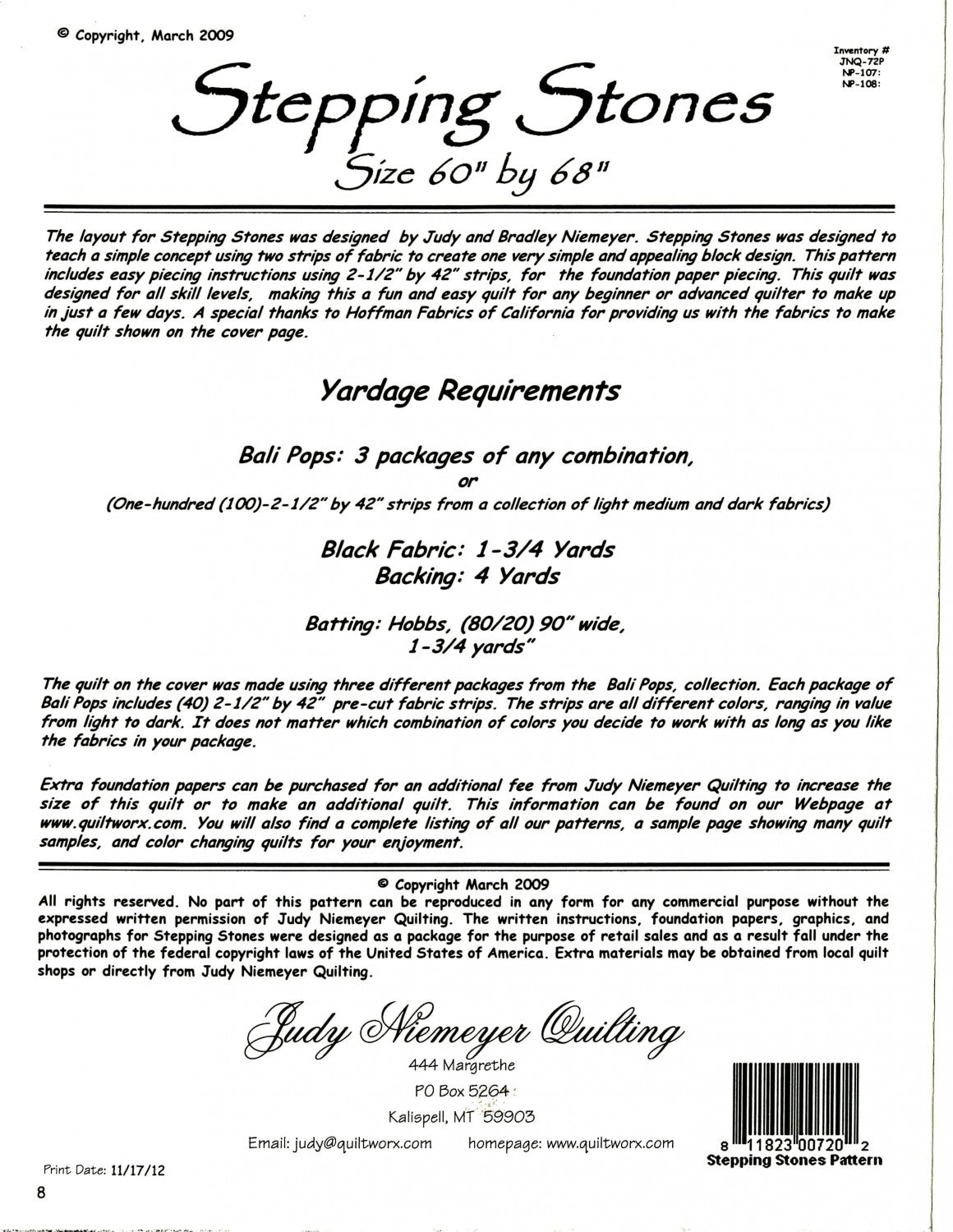 - Includes easy cutting instructions using 2-1/2in x 42in strips