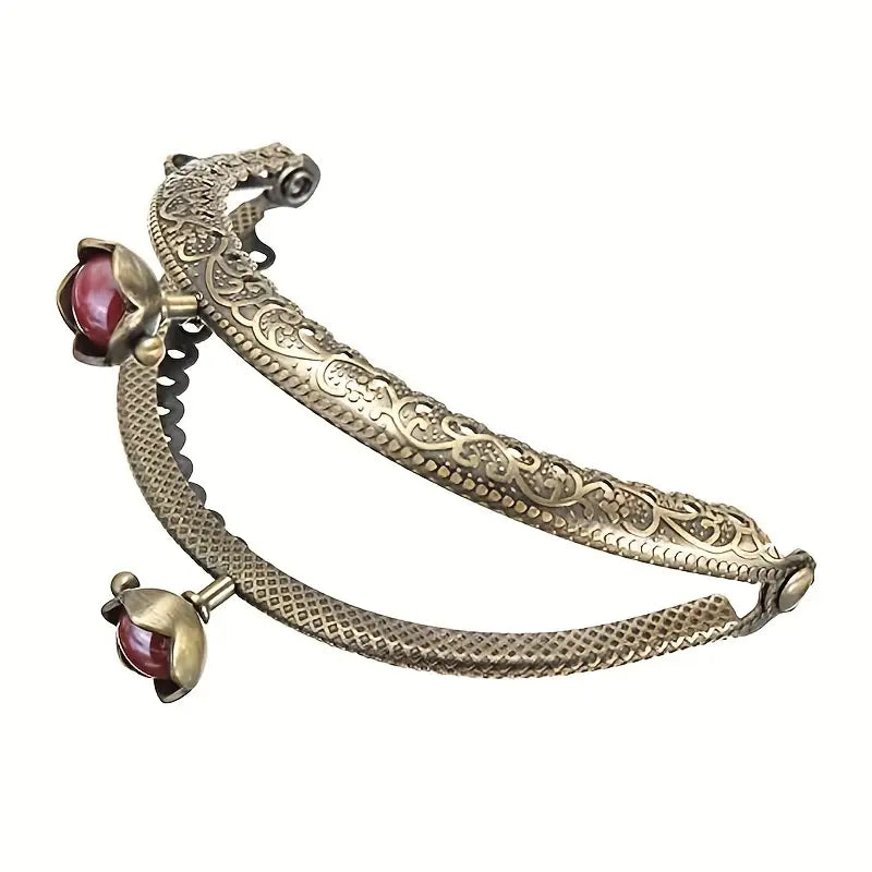 Add this gorgeous kiss lock purse frame to your next project for an extra bit of fancy! Featuring a gorgeous lotus lock with a coloured faux gem, it's very memorable.